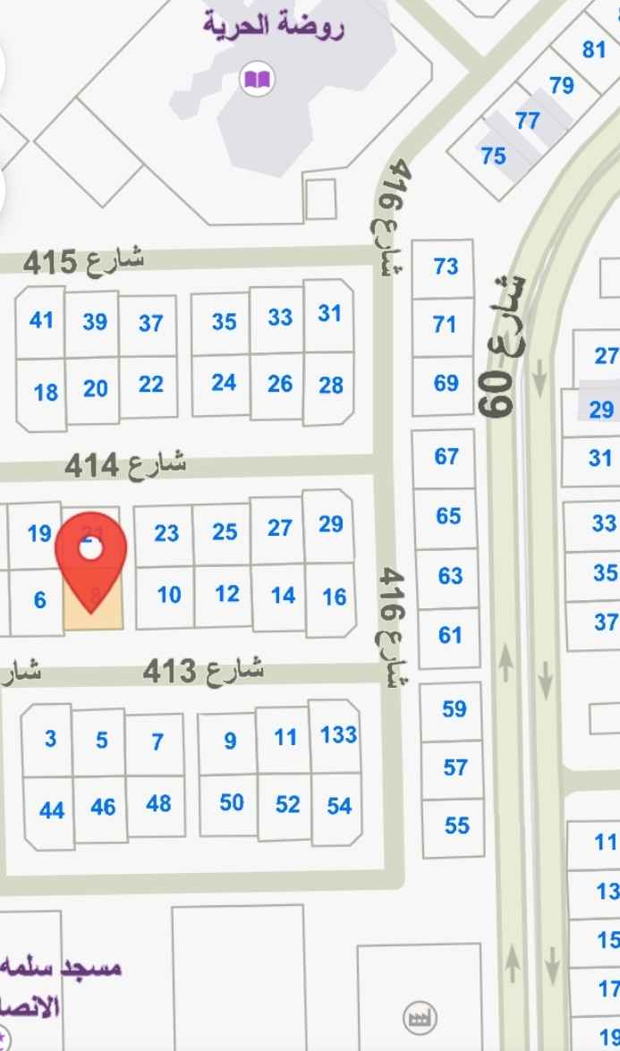 قطاع C قطعة 4 المساحة600م²شارع+سكة ارتداد 14م + جنب 4 متر دورين وربع – سكن المالك مصعد-حديقة خارجية سور تركي بجانب الديوانية مظلة سيارات-شقة مؤجرة خدمات دور ونص