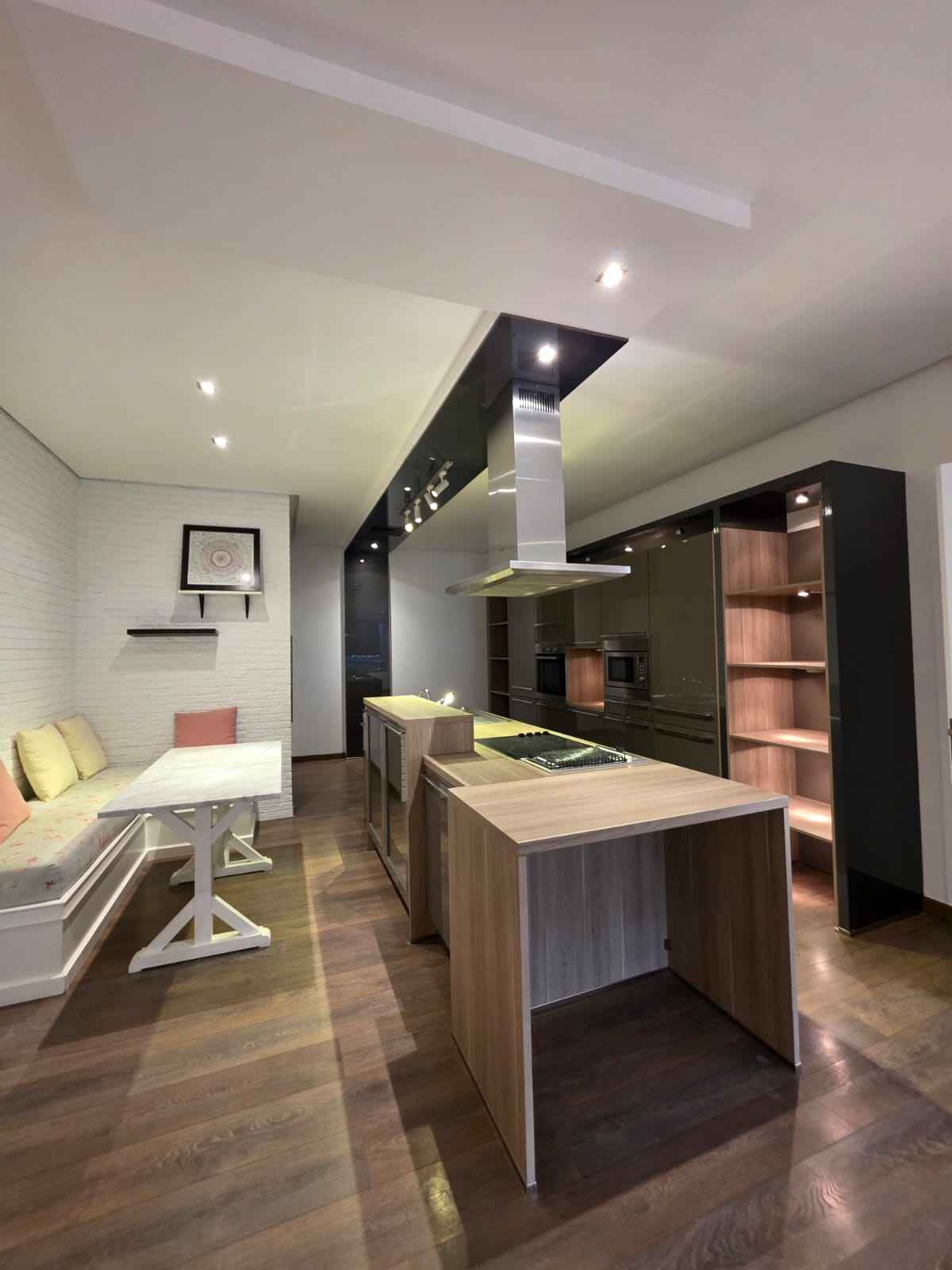 مطبخ رئيسي (Heavy Kitchen): مطبخ مجهز بالكامل للطبخ الثقيل، مع مدخنة مركزية (هود) وخزائن واسعة.