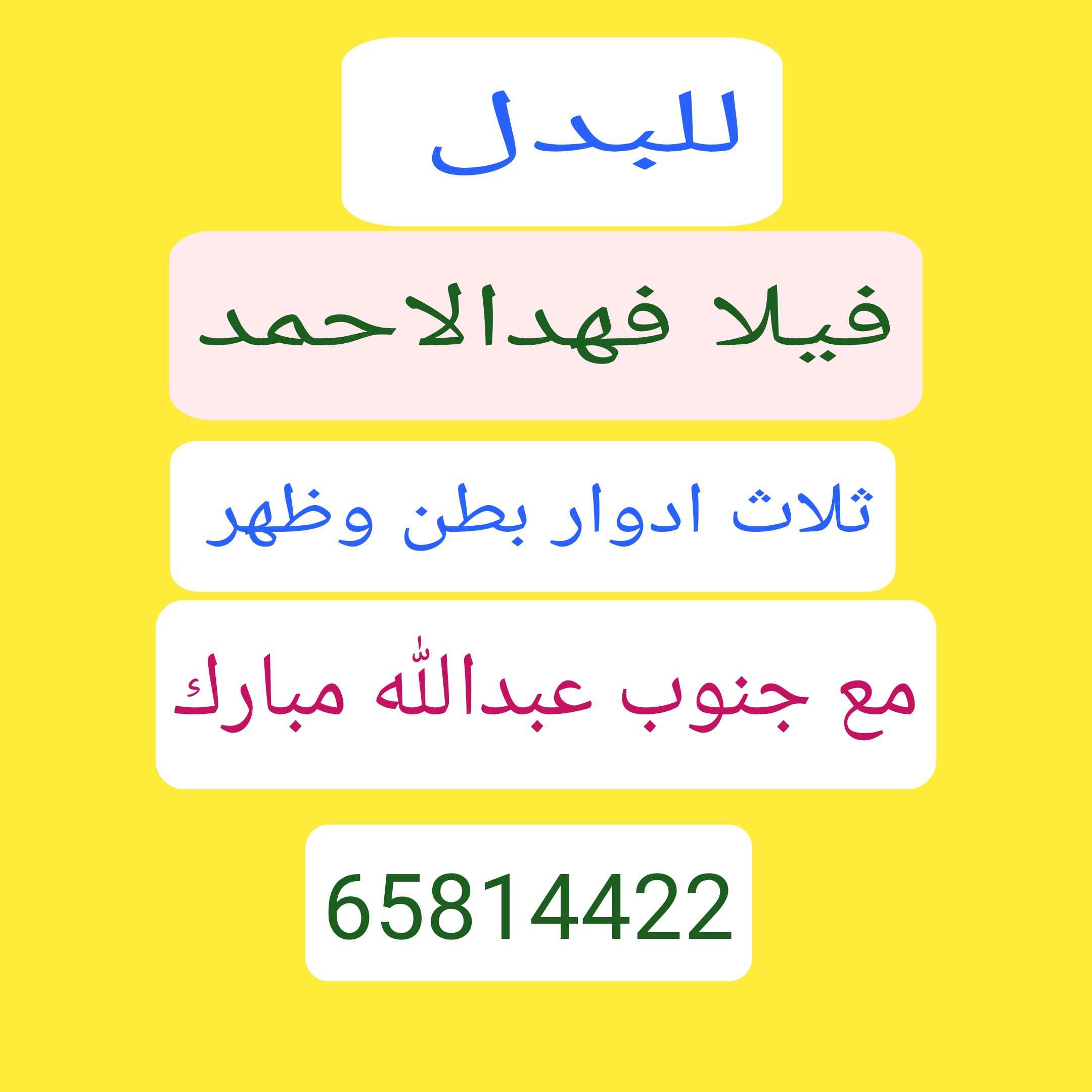 للبدل بيت جابرالاحمد بطن وظهر مع طلب أو مع صباح الاحمد 65814422