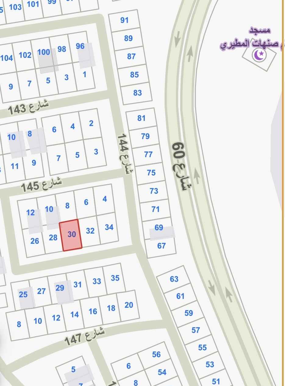المساحة 400م - شارع واحد