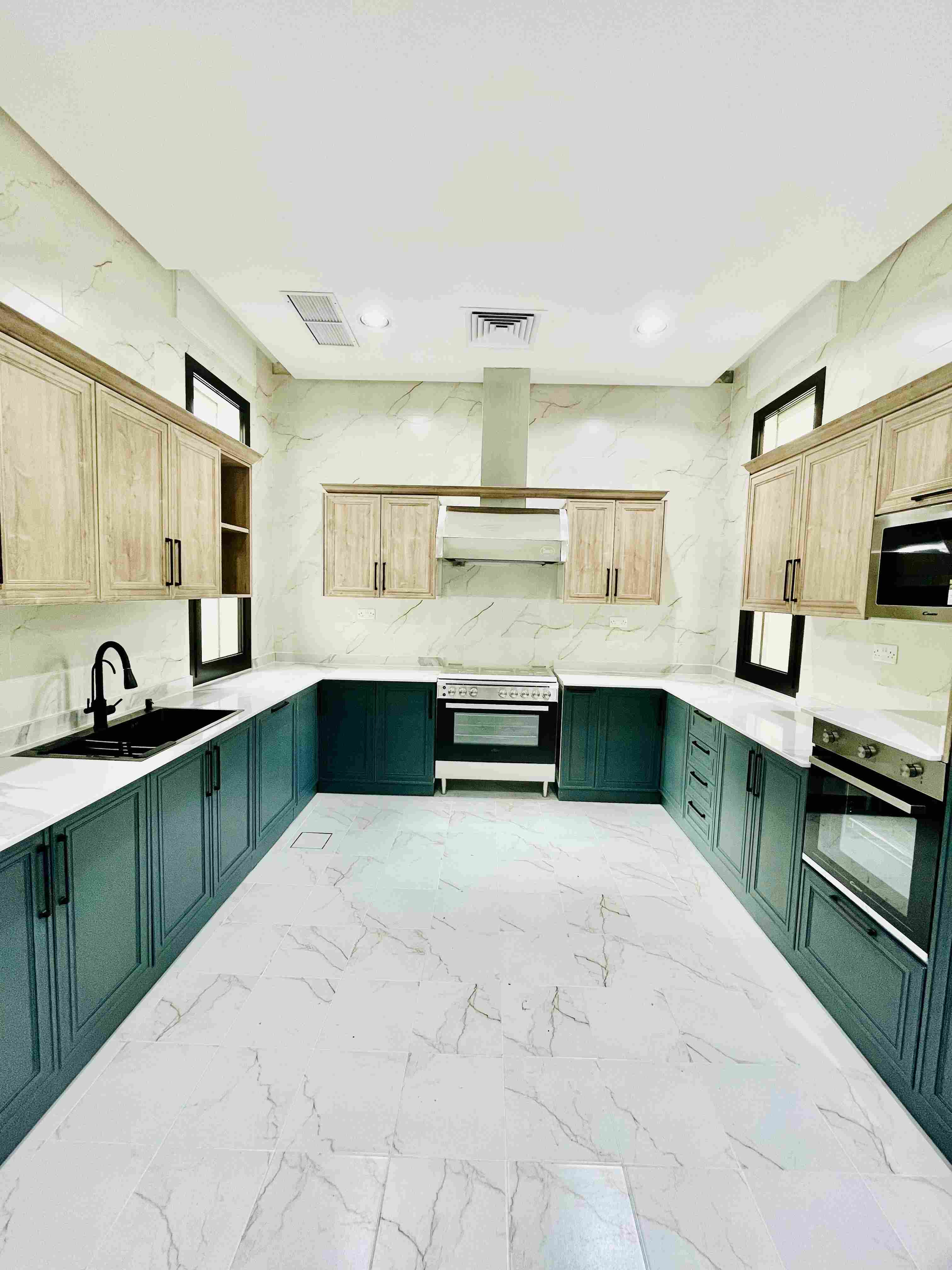 دور ثاني فاخر للاإيجار في منطقة الشامية مكون من 5 غرف منهم ثلاث غرف ماستر وغرفتين يخدمهم حمام وصاله كبيره مع مطبخ تحضيري ومطبخ رئيسي وغرفة خادمه مع حمامها وجلسه خاصه على الروف مع مطبخ تحضير الإيجار 1450دك شامل كهرباء ماء صيانة تكييف للاستفسار الاتصال على رقم 94948581