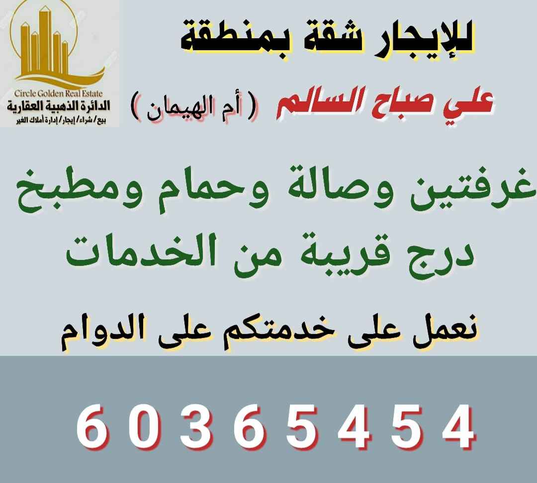 للايجار شقة بأم الهيمان ٣غرف وصالة وحمامين ومطبخ وغرفة عاملة بحمامها دور اول درج تكييف سنترال لمعاريس أو اسرة صغيرة للجادين فقط