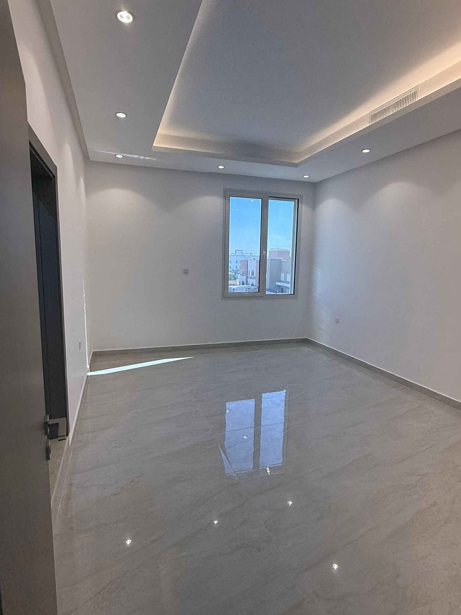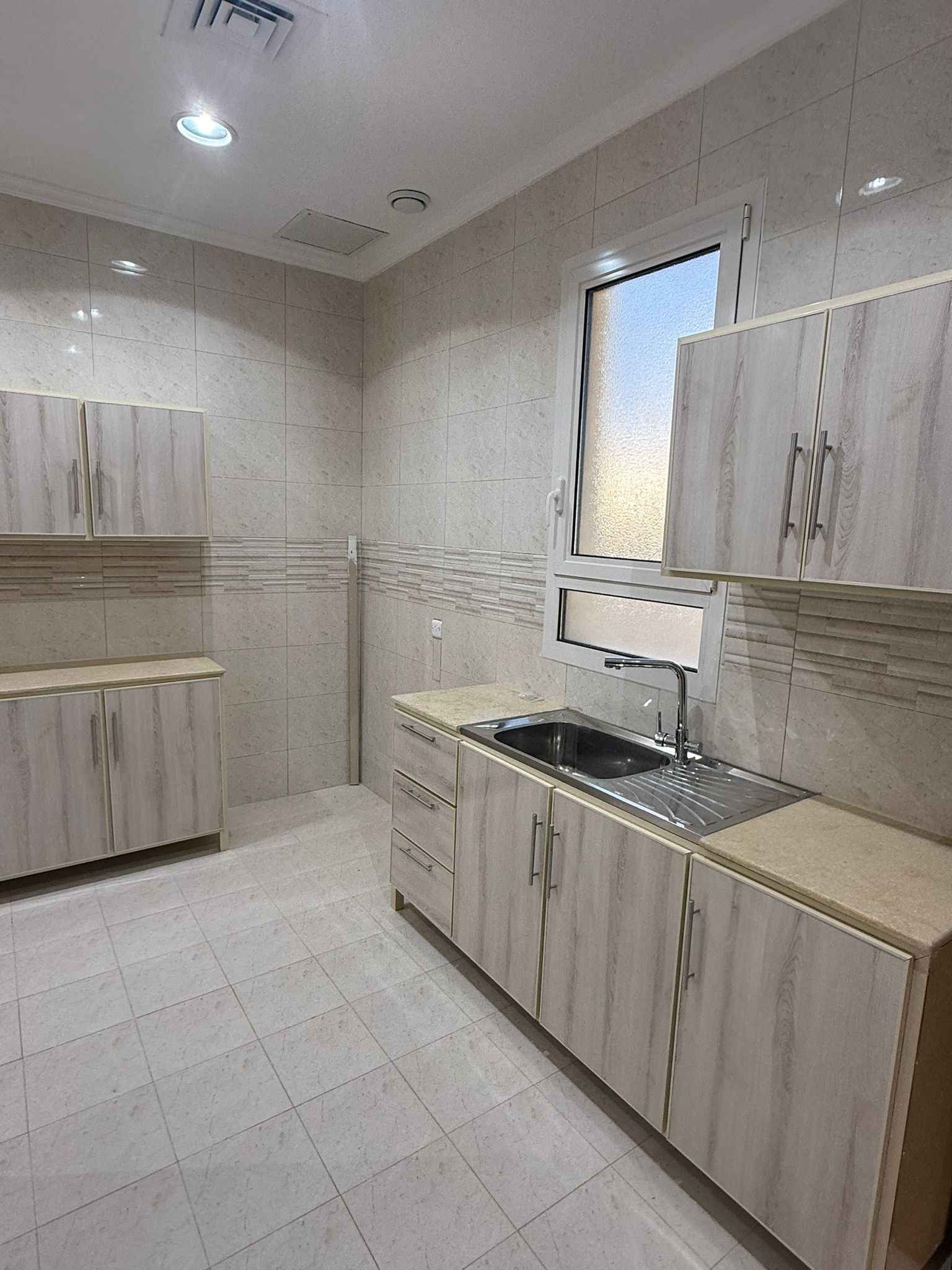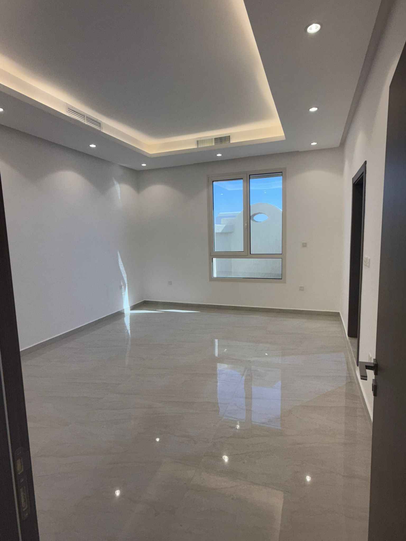 ثلاث غرف ماستر وصالة كبيرة ومطبخ مجهز وغرفة خدامة بحمامها ومصعد وموقفين تشطيب سوبر ديلوكس
