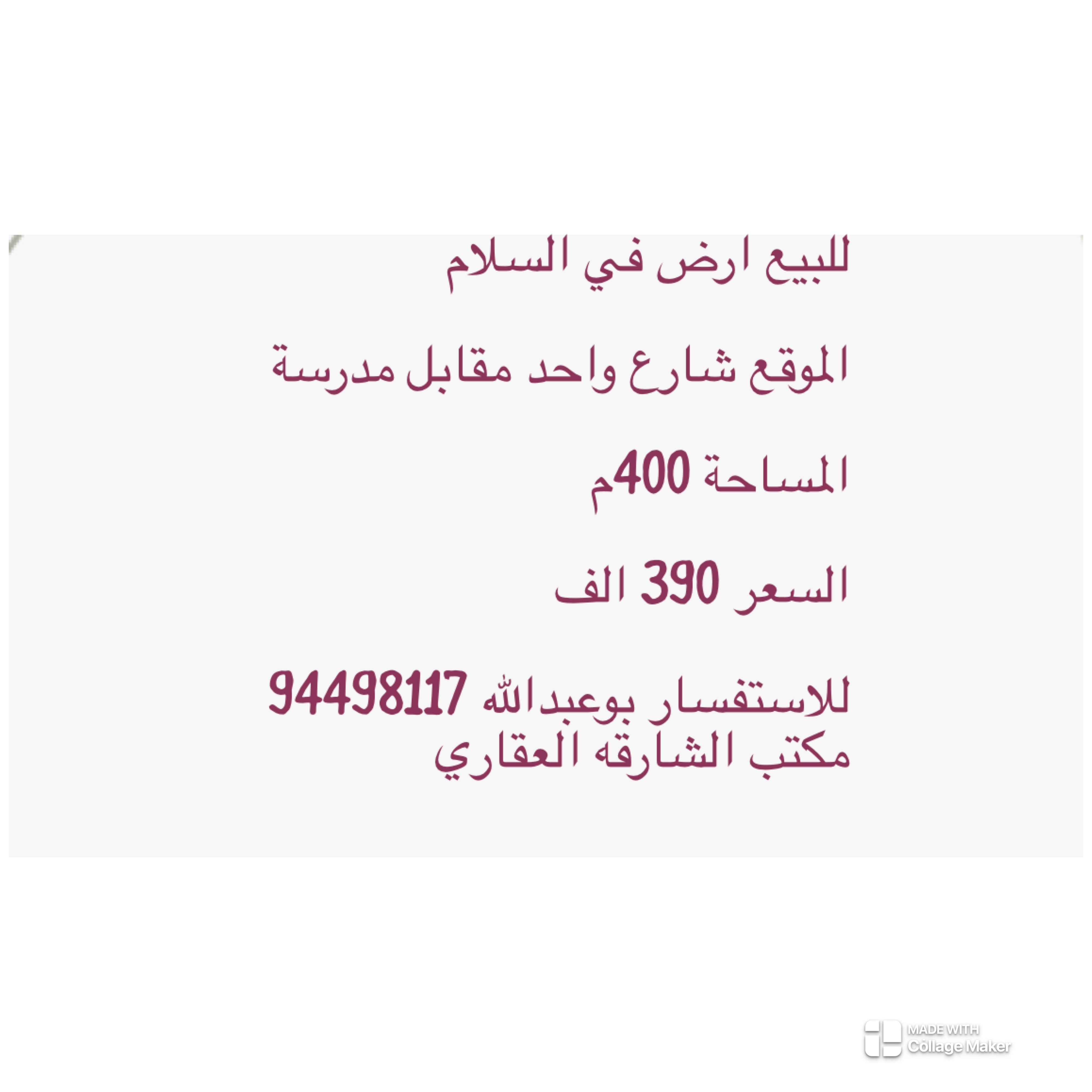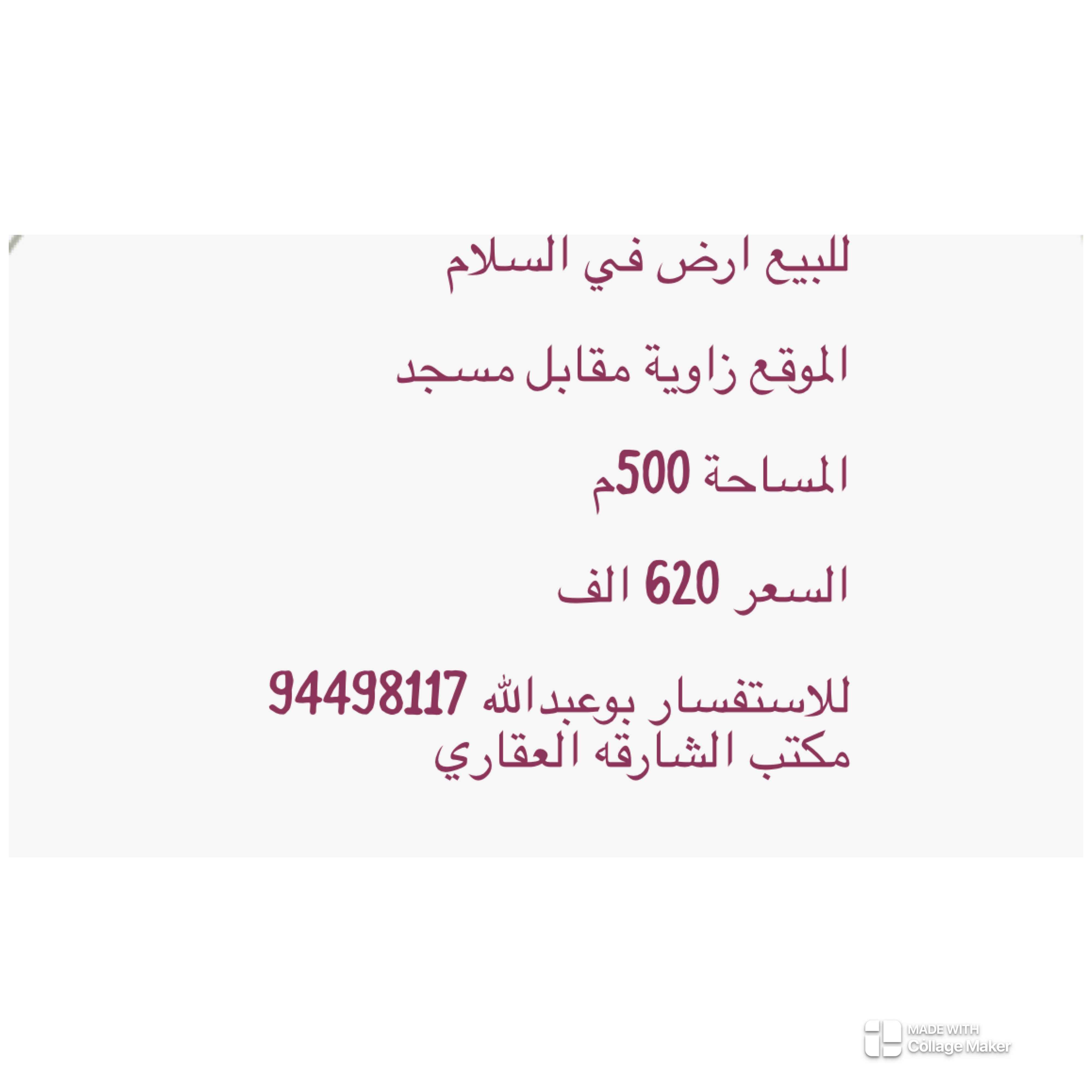 للبيع ارض في السلام قطعة 3 المساحة 511م