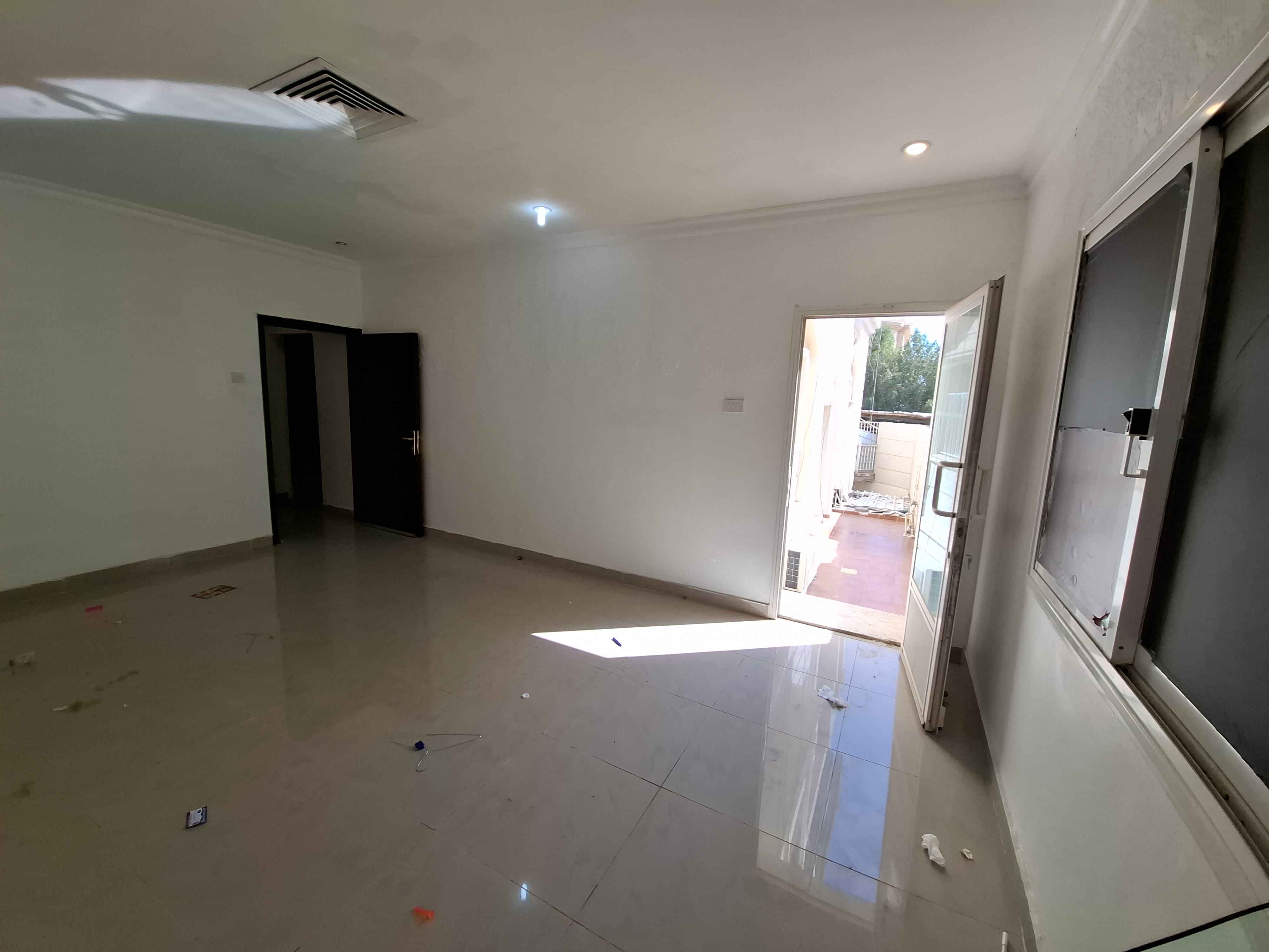 للايجار في مبارك الكبير شقة ارضية بمدخلين احدهم بروحه وموقفين تتكون من 3 غرف منها ماستر + غرفة خدامة مع حمام + صالة كبيرة + حوشين + مطبخ مجهز موقع قرب مسجد ومدرسة وسوق مركزي ايجار 400 دك