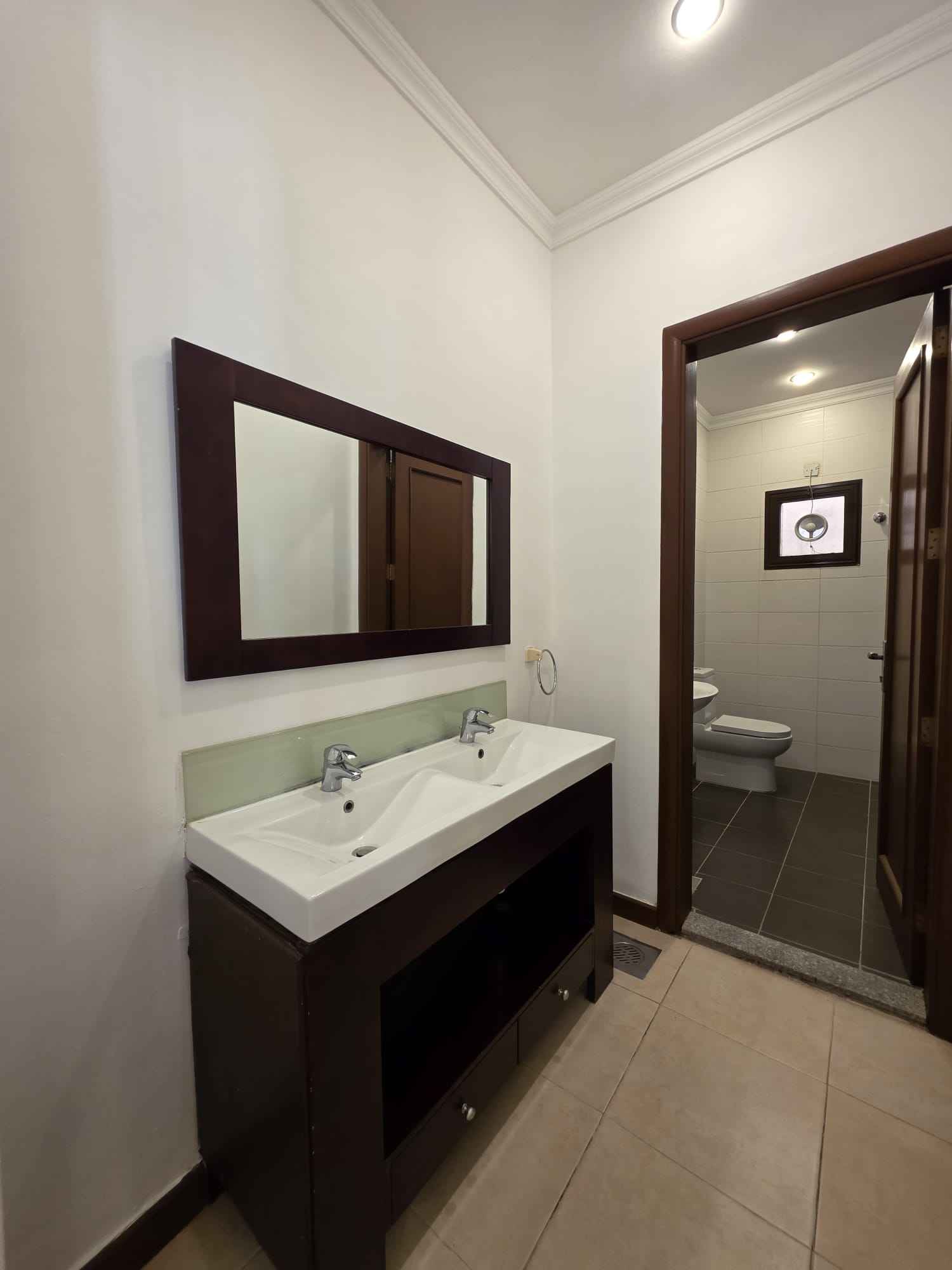 Consists of a large living room, guest bathroom, 2 master bedrooms, 2 bedrooms with a shared bathroom, kitchen, and laundry room. Rent: 800 dinars / One month's deposit / Half-month commission