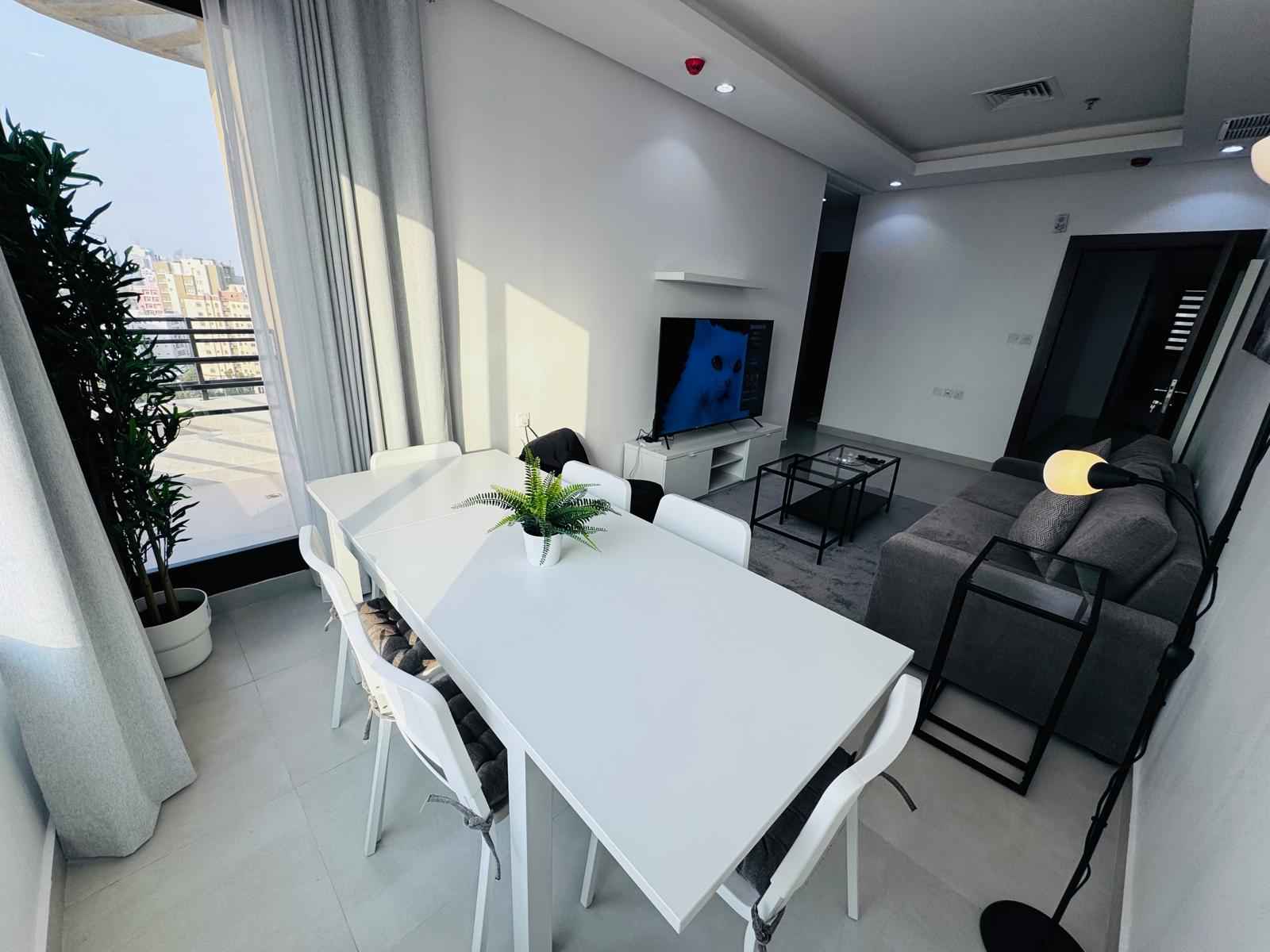 شقة مفروشة للإيجار في السالمية، موقع مميز،بناية حديثة قريبة من جميع الخدمات، مارينا مول، شارع سالم المبارك، وقريبة من سوق السالمية للوافدين. غرفتين نوم، منها ماستر، مع حمام خارجي كامل، وصالة مع بلكونه، ومطبخ مجهز بجميع الأجهزة الكهربائية الحديثة. تشمل الخدمات تنظيف، لوبي مع إنترنت، وجيم مجهز بأحدث الأجهزة الكهربائية