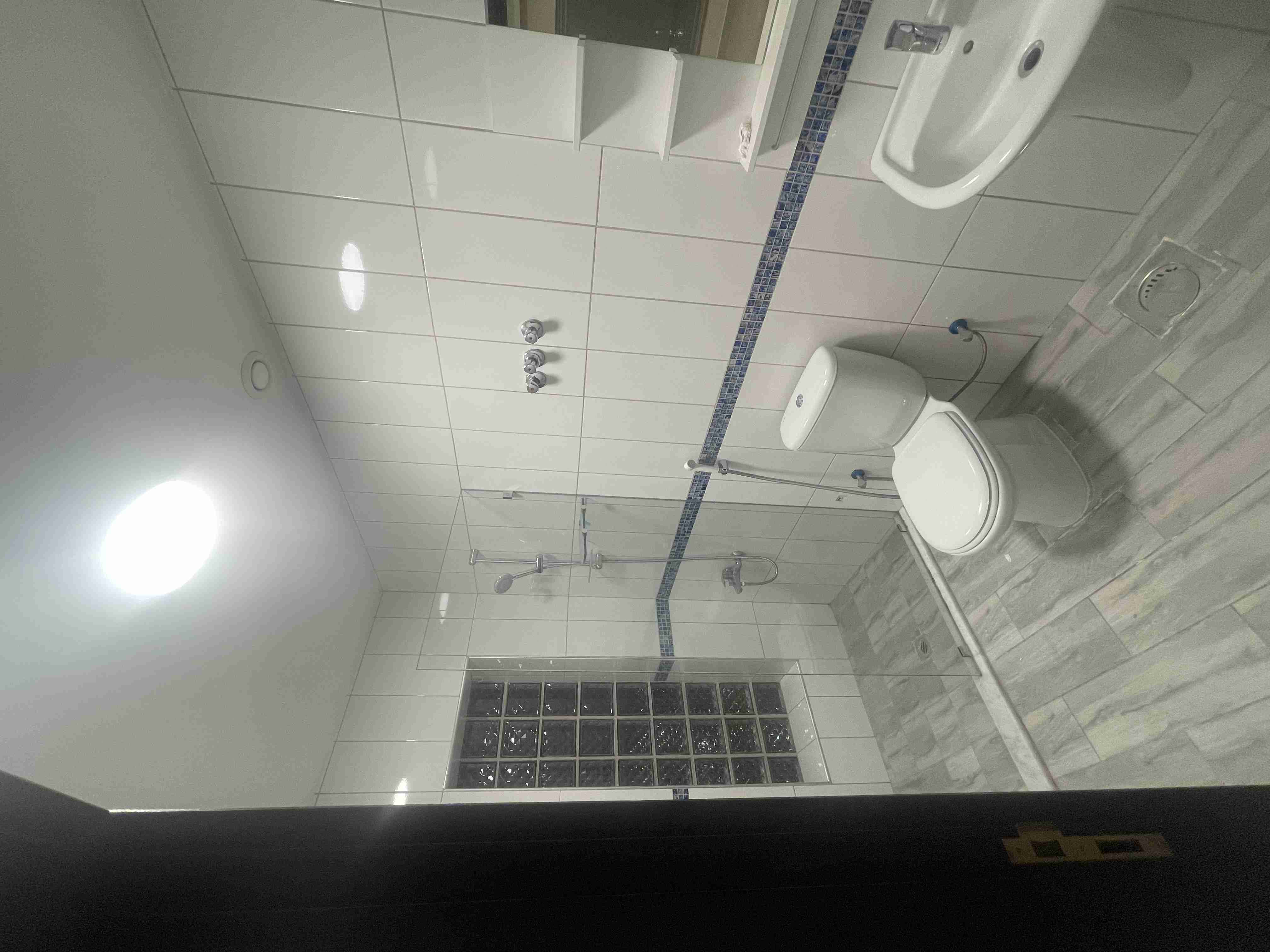 مكون من ٤ غرف وصالتين ( ممكن تغيير الصالة الثانية الى غرفة) و٥ حمامات ومطبخ كبير ومطبخ تحضيري..سكن المالك.. مصفطين بلكونة بالصالة.. اجار ٨٥٠ ..