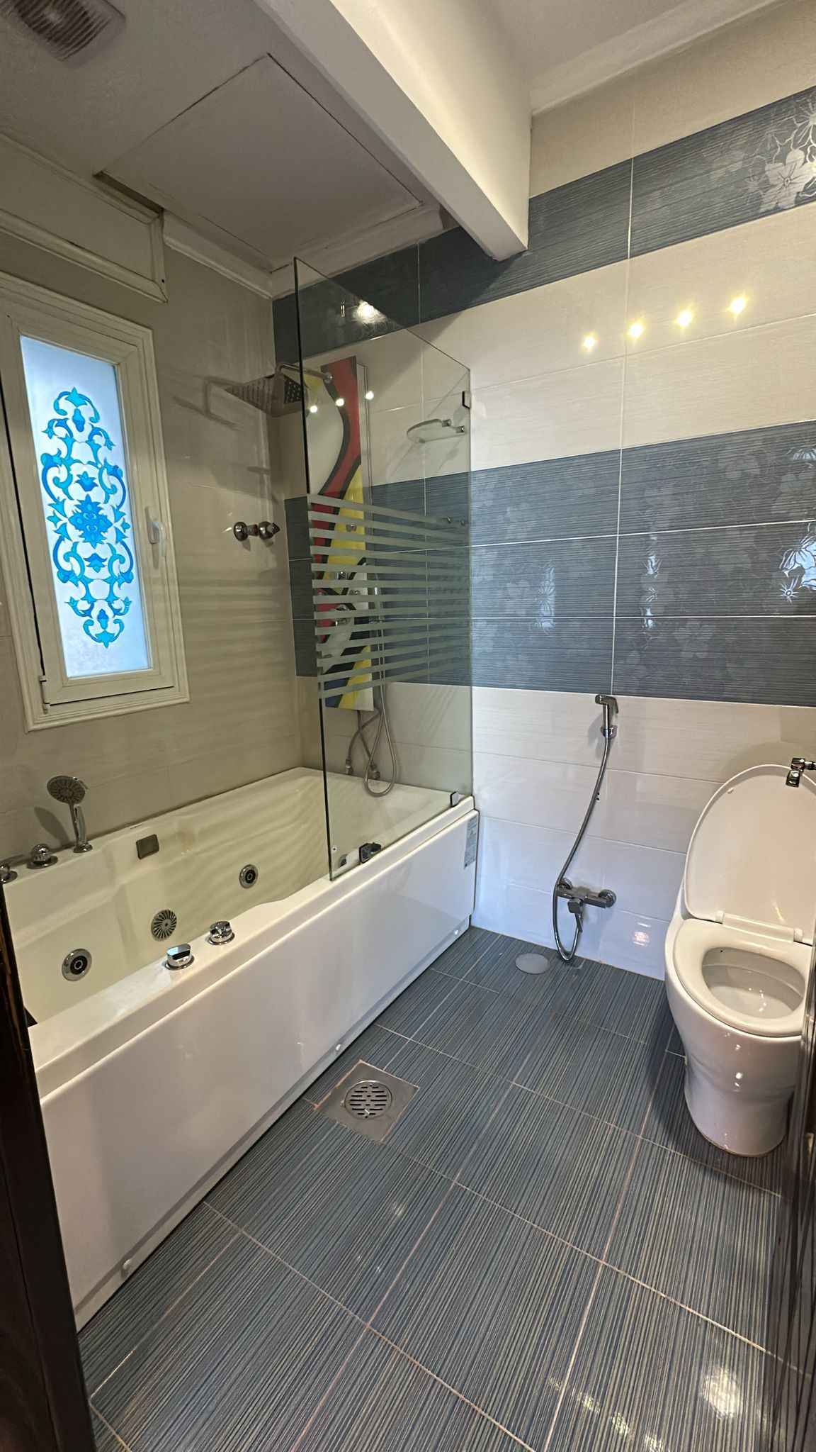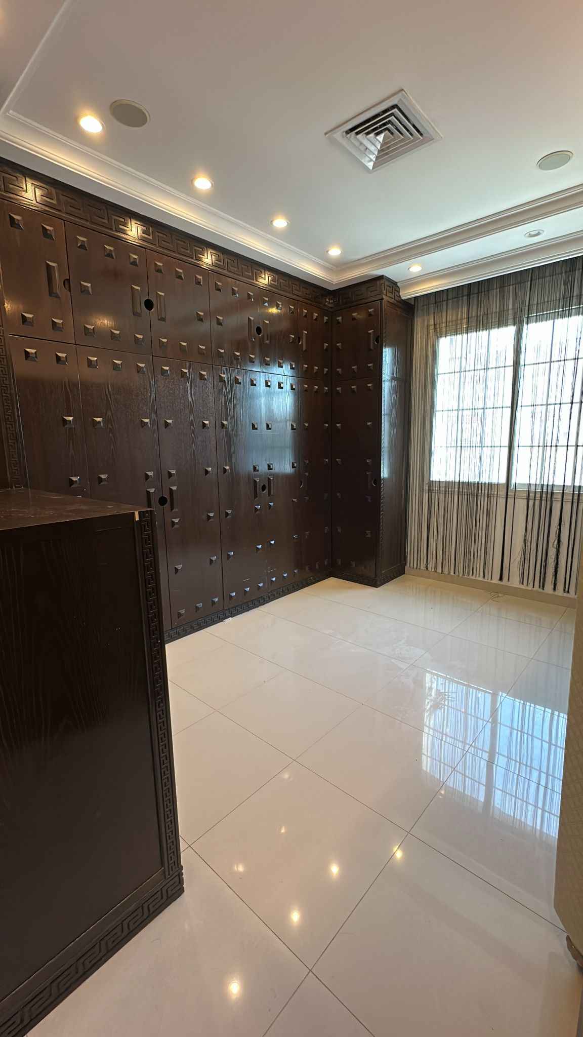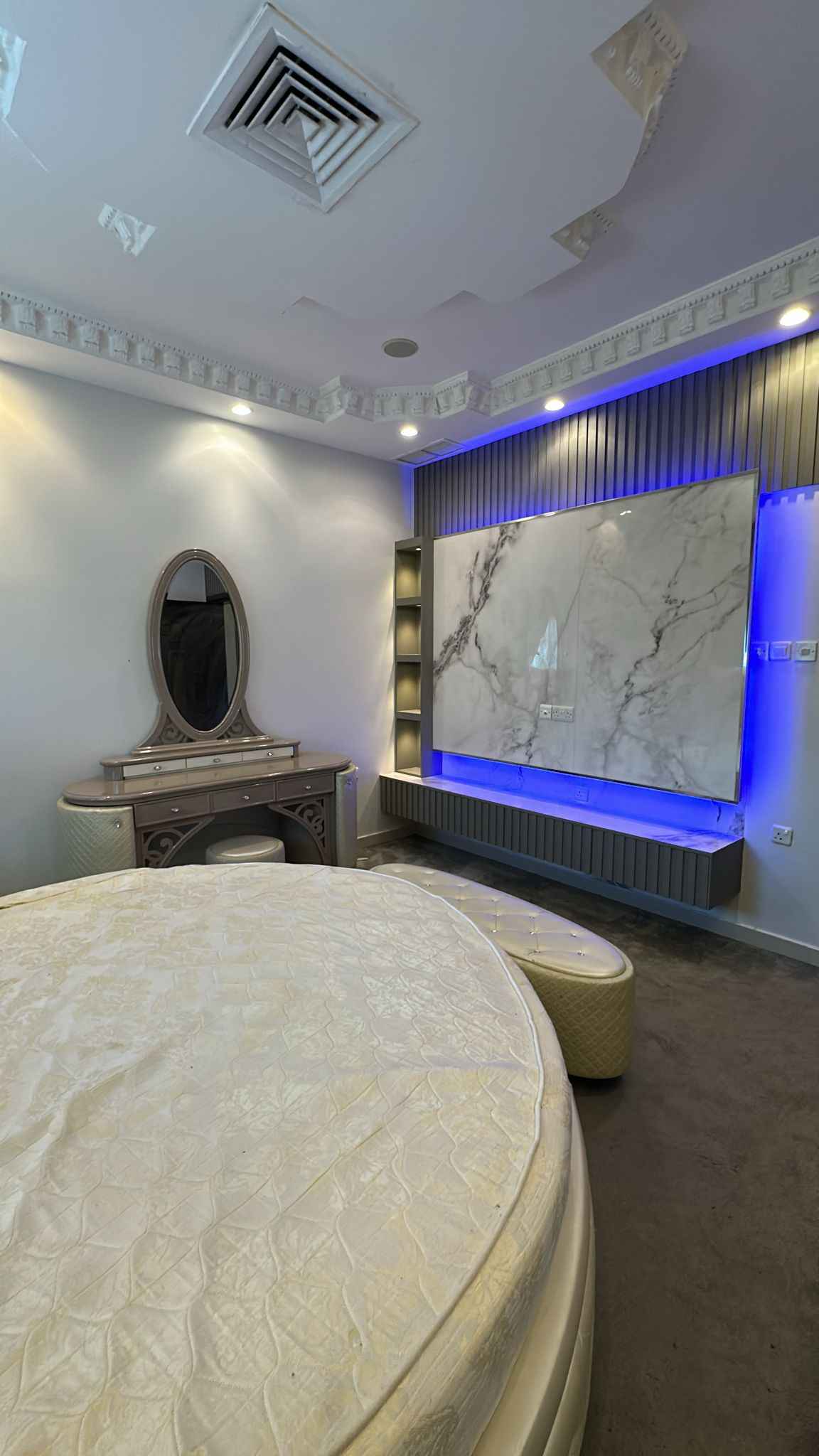 Apartment for rent in a villa in Al-Manqaf, near the sea (furnished). Block 4. Consists of: 3 bedrooms, 2 bathrooms, living room, kitchen, elevator, and central air conditioning.