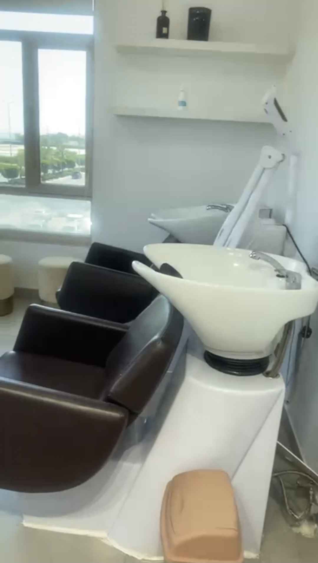 يتكون من كاشير و ٦ كراسي شعر + 3 مغاسل + 6 مرايات + 3 ارواب + جهاز تنظيف بشرة جديد + مخزن صغير . البيع غير شامل المواد. الشقة ماجرة 450 دك سعر البيع 3200 دك
