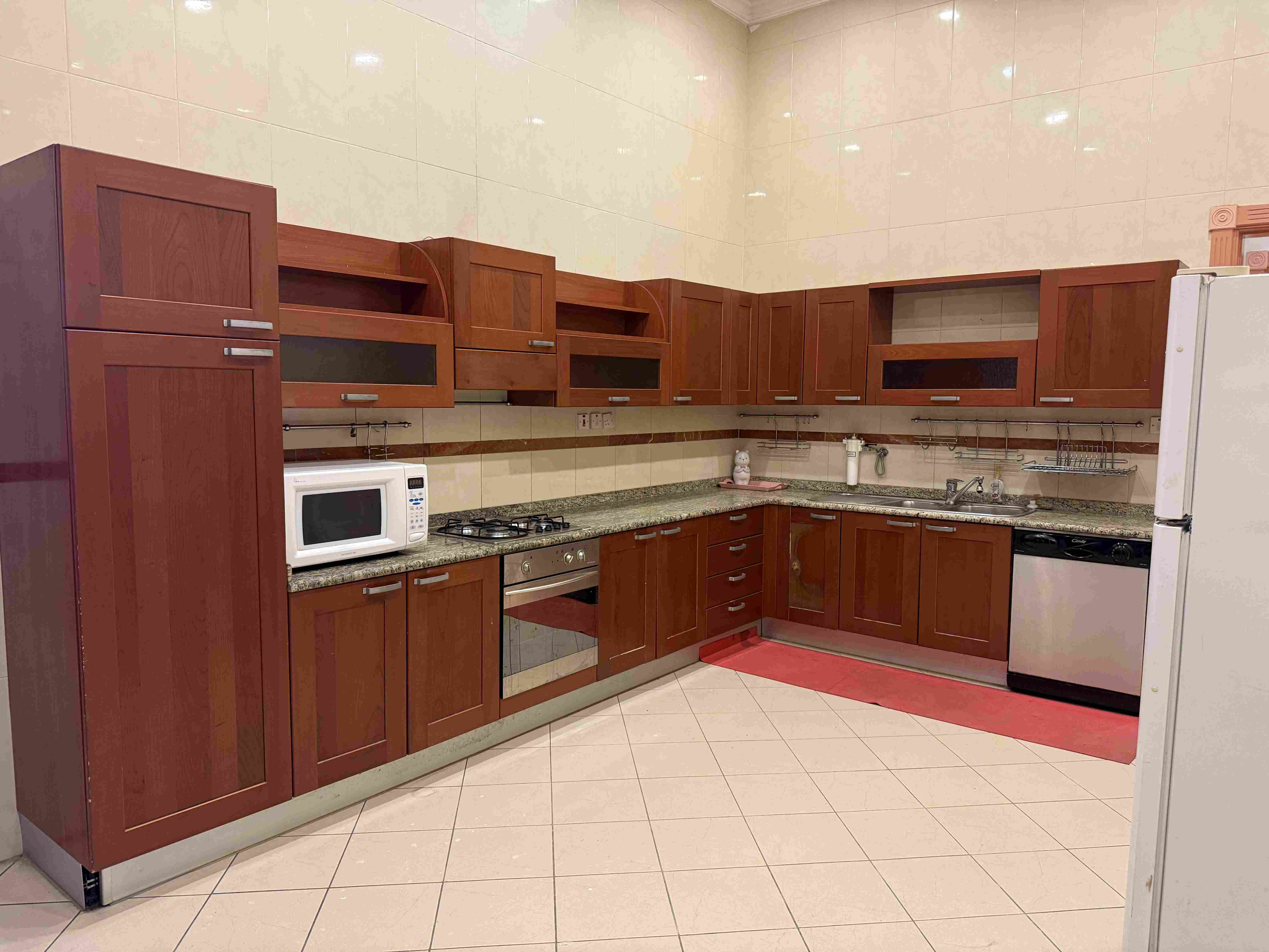 4 غرف نوم واسعة "منهم غرفتين ماستر" - وحمام ثالث يخدم الغرفتين - وجميع الغرف مزودة بكبتات ملابس - وصالة كبيرة مع حمام خاص لها - ومطبخ كبير مجهز - وغرفة عاملة مع حمام - الإيجار 850 دك - والفيلا مدخلها ومخرجها قريب جدا من خط الفحيحيل السريع - ( رقم الترخيص 1066 / 2025 )