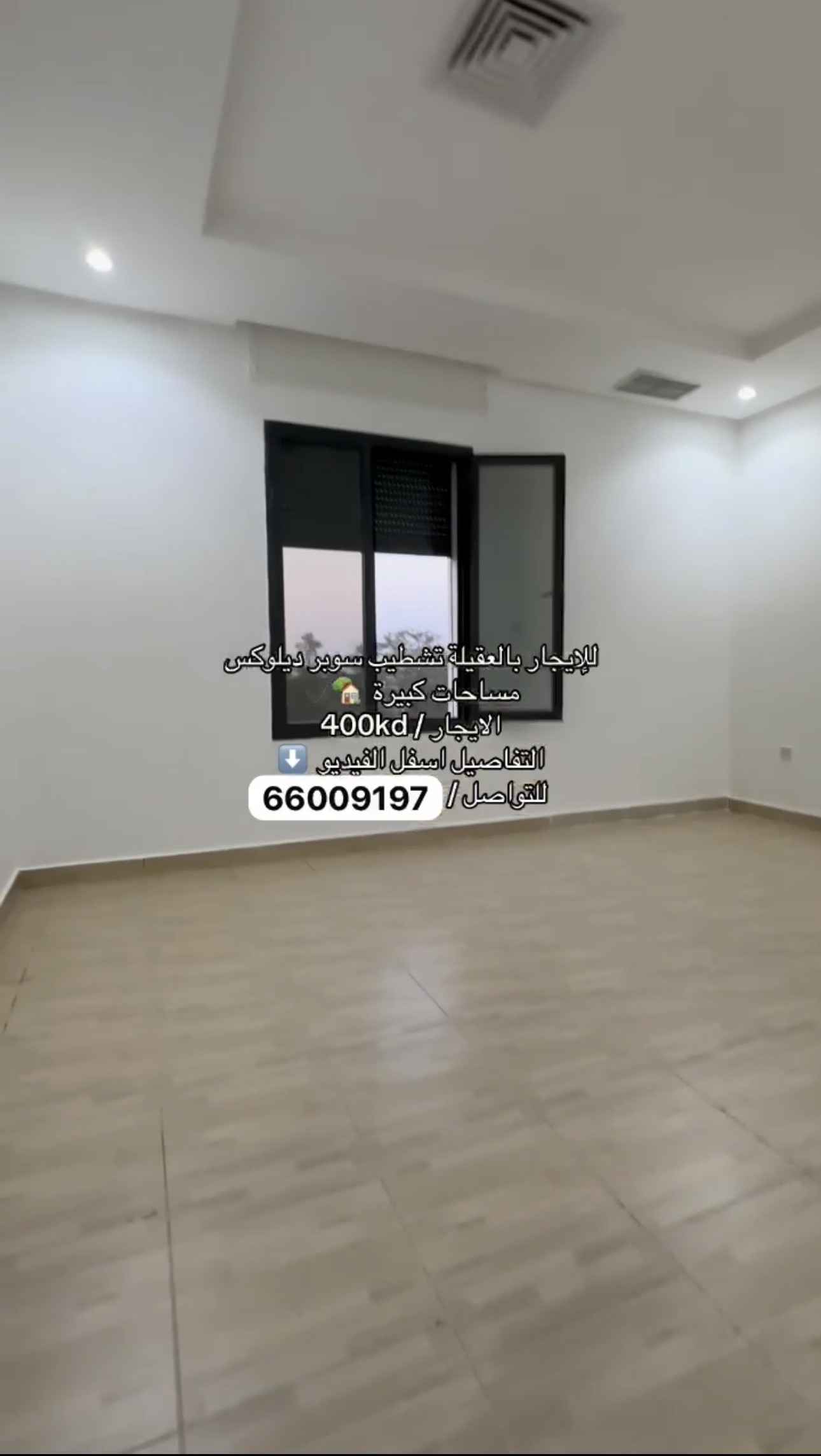للإيجار شقة في العقيلة موقع مميز مساحات كبيرة تشطيب VIP دور أول مصعد تتكون من 3 غرف نوم منهم 1 ماستر واثنين بينهم حمام + صالة كبيرة + شتراات + مطبخ مجهز + موقفين خلف بعض الإيجار 400 KD للتواصل 66009197
