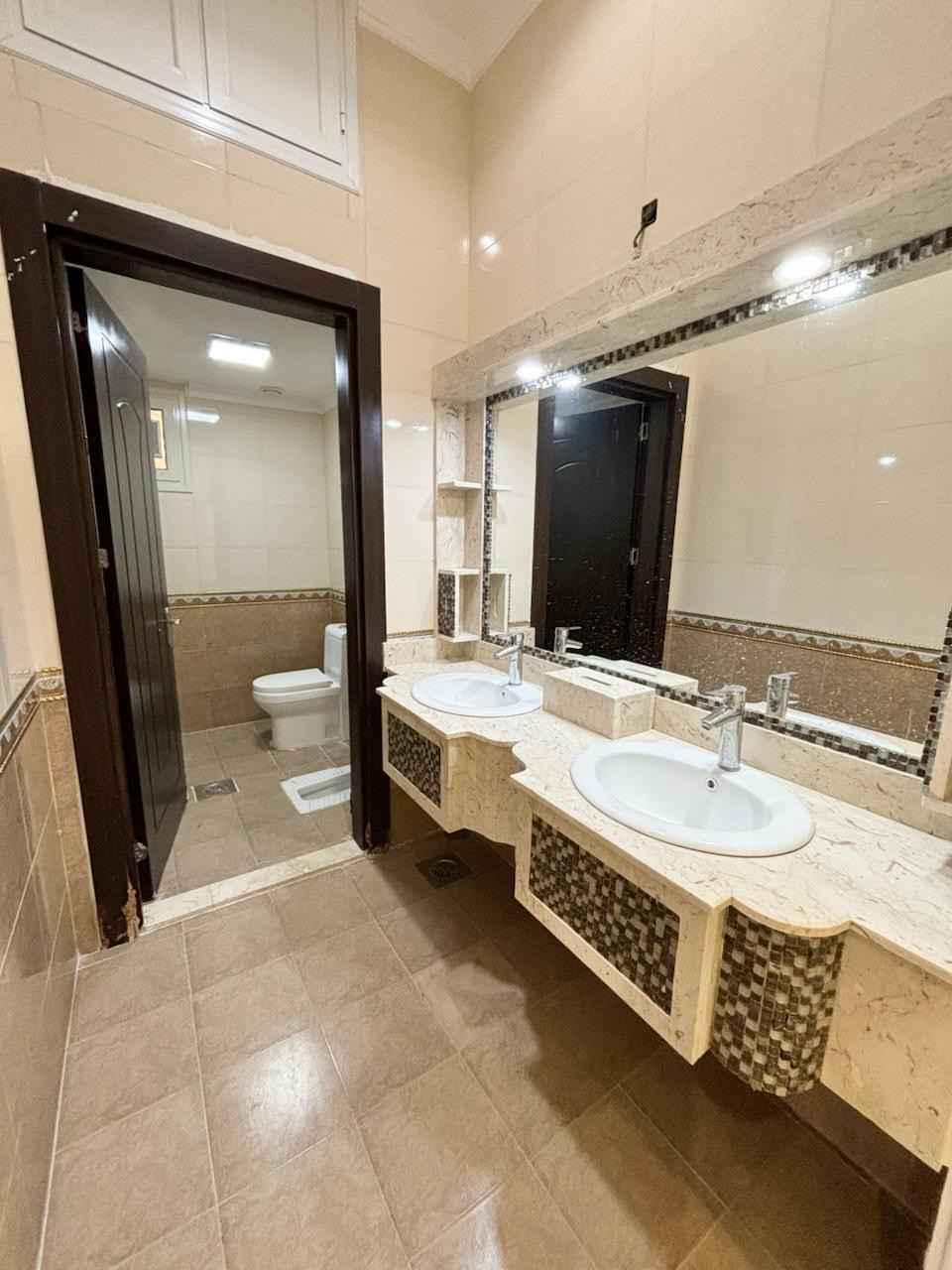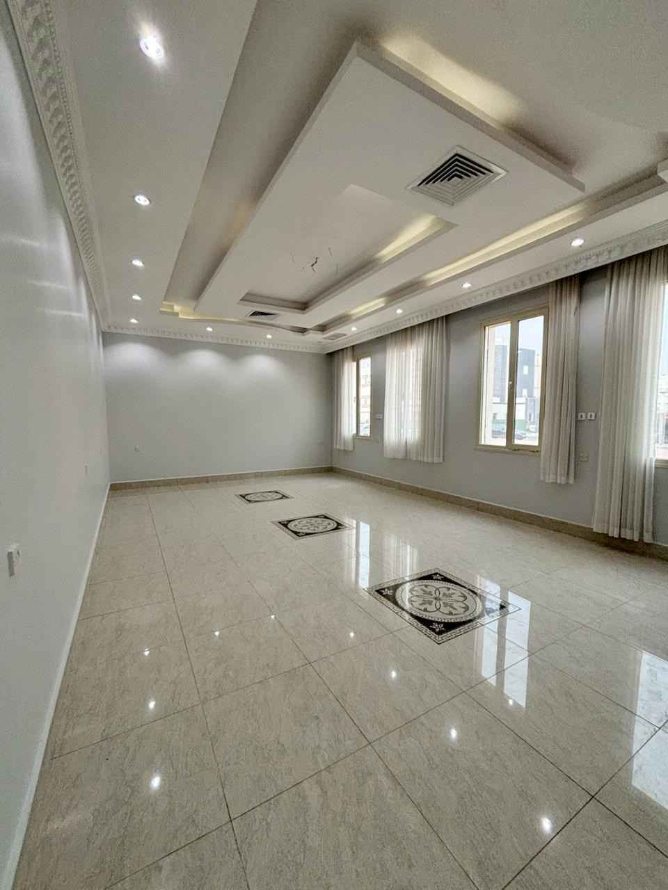 للايجار دورين دوبلكس في جابر الاحمد درج داخلي بيت زاوية شارعين فيه ديوان ومقلط و7غرف ومطبخ كبير ومخزن وغرفة خادمة وسايق وحمامات ومغاسل