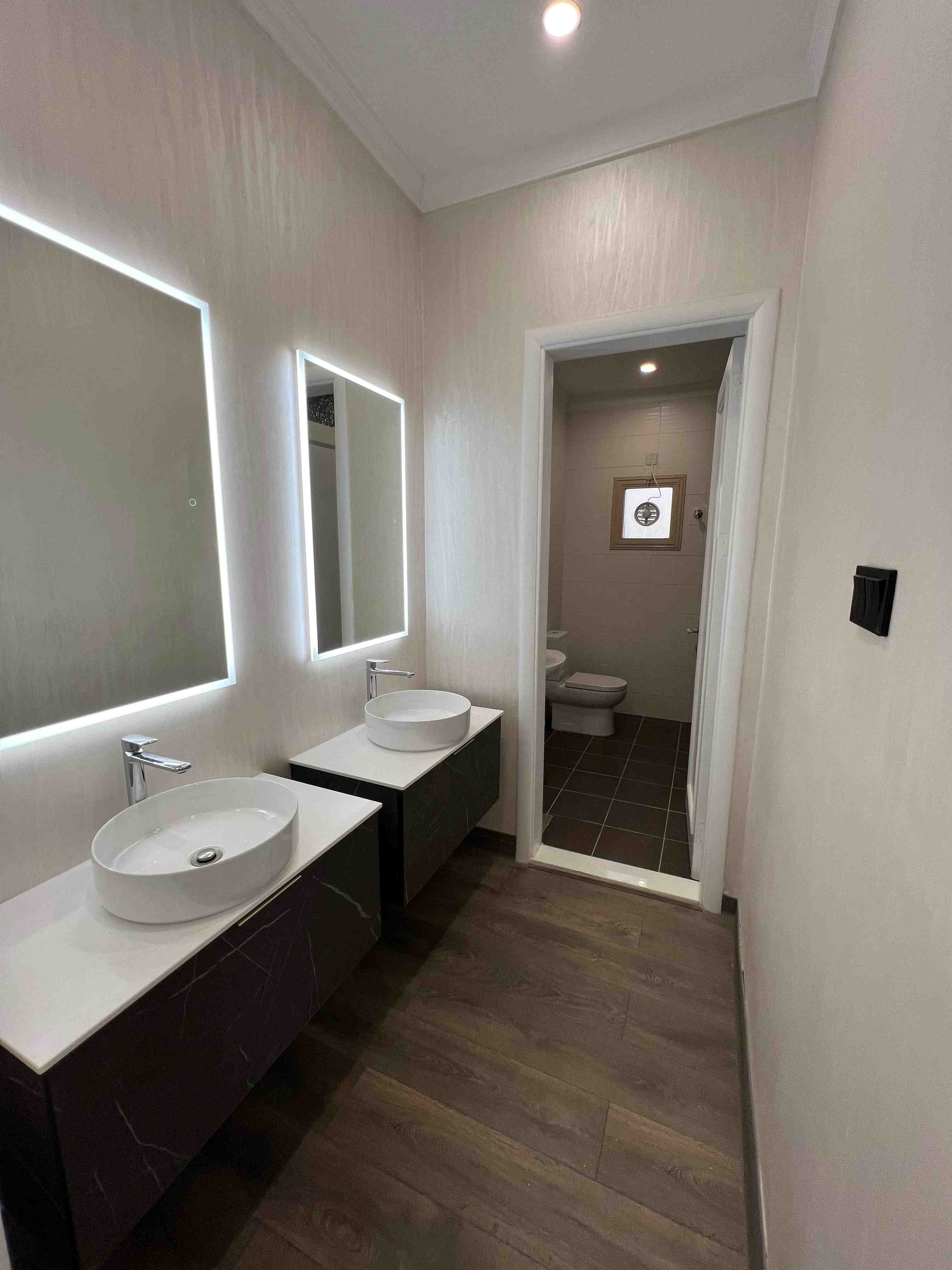 للإيجار دور اول في الصديق تشطيب ديلكس صبغ إيطالي و أرضيات باركيه يتكون من 4 غرف نوم منهم 2 ماستر مع كبتات + صالة كبيرة 12 في 5 + شتراات + مطبخ مجهز بالكامل + غرفة خادمة مع حمامها و غرفة غسيل + 5 حمامات موقفين مظلل جنب بعض الإيجار 1000 KD للتواصل 66009197